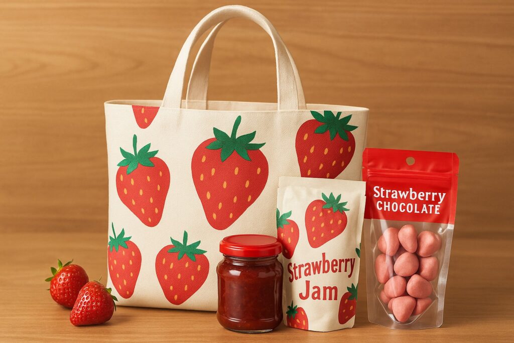 いちごバッグは毎年異なるテーマでデザインされており、トートバッグタイプや巾着タイプ、ショッピングバッグタイプなどバリエーションも豊富です。