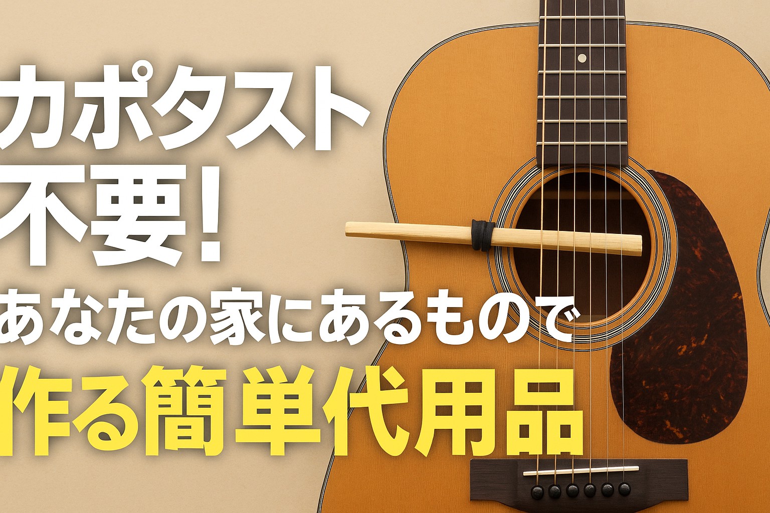 この方法は非常にシンプルで、道具さえあれば数分で即席カポを作ることができます。