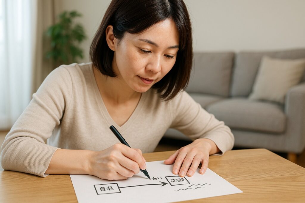 可能であれば補足欄を作り、「普段使う近道」「雨の日に変更するルート」などの追加情報も記載しておくと、より完璧な略図になります。