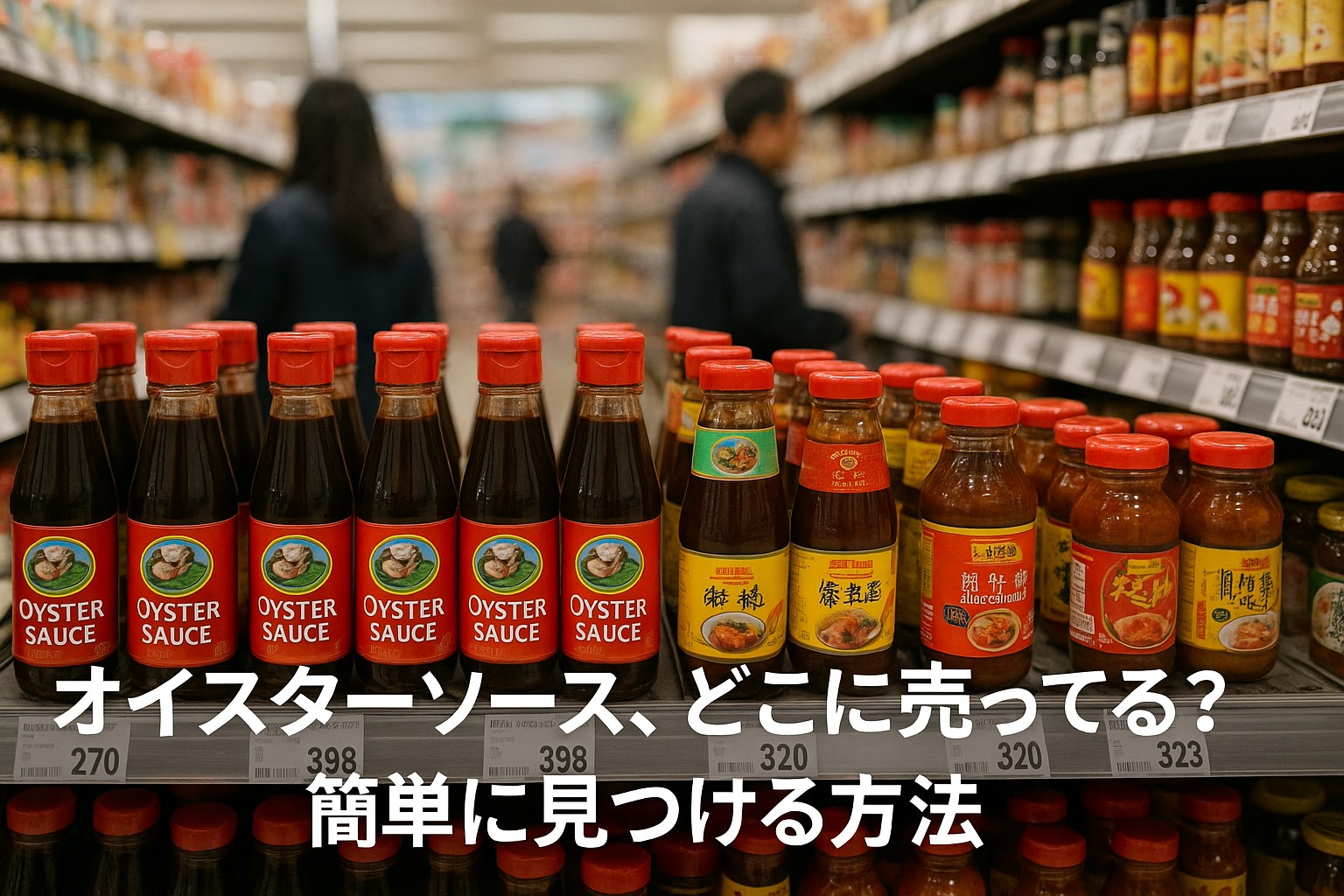 オイスターソースは、ほとんどのスーパーで取り扱われており、売り場は主に 中華調味料コーナー か ソース類・だし調味料の棚 にあります。