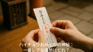 雑学 ハイチュウおみくじの神秘:一番レアな運勢はどれ? ハイチュウおみくじは、人気キャンディ「ハイチュウ」の包み紙に運試しの楽しさをプラスしたユニークなお菓子です。食べ終わった後に包み紙を開けると、そこには運勢やメッセージが書かれており、日常の中でちょっとしたワクワク感を味わえる仕組みになってい... 雑学