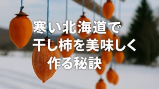 食関係 寒い北海道で干し柿を美味しく作る秘訣 北海道の冬といえば、凛とした寒さ、乾燥した空気、そして晴れの日が多いという特徴がありますが、実はこの気候こそが干し柿作りにぴったりの条件なのです。寒風によって水分がゆっくりと抜け、糖度がギュッと凝縮されることで、自然の甘みとねっとりした食感... 食関係