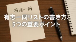 マナー 有志一同リストの書き方、5つの重要ポイント 「有志一同リスト」と聞くと、やや堅苦しい印象を持つかもしれませんが、これは私たちの“思い”や“気持ち”を丁寧に形にして伝えるための大切なツールです。退職祝い、香典、出産祝いやクラウドファンディングなど、さまざまな場面で活躍し、「誰が」「どの... マナー