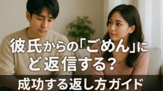 雑学 彼氏からの「ごめん」にどう返信する?成功する返し方ガイド 恋人同士の関係には、時にすれ違いや衝突がつきもの。 そんなとき、彼氏からの「ごめん」という言葉は、単なる謝罪にとどまらず、関係を大切に思っているサインでもあります。 でも、「なんて返せばいいかわからない…」と悩む人も多いはず。謝罪にどう応え... 雑学
